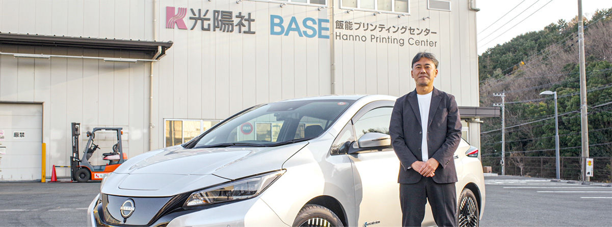 当社の大きな特長として、SDGsへの取り組みが挙げられます。2015年7月には環境配慮をコンセプトに、埼玉県飯能市に「飯能プリンティングセンターBASE」(以下、飯能)という印刷工場を竣工。現在では、この工場建屋の屋根には太陽光発電パネルを敷き詰めるとともに、グリーン電力を採用することで、Scope2におけるGHG(温室効果ガス)排出量を実質ゼロにしています。