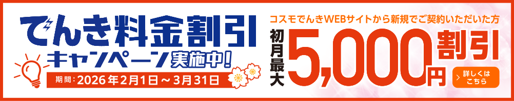 • ※口座振替にてお支払いの場合、金融機関にて口座の登録が完了したのちに、コスモでんきの供給を開始させて頂きます。